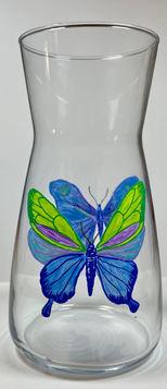 El vidrio es un soporte muy versátil. El cristal pintado a mano puede utilizarse para el uso común y como elemento decorativo. Si buscas algo original, especial y único, es un regalo perfecto que se puede personalizar con una enorme variedad de diseños. Trabajo por encargo con copas de cristal, botellas, vasos y tablas de cristal para aperitivos. Una vez secas y curadas en horno, las piezas son tratadas con al menos 3 capas de un barniz especial que les aporta durabilidad y resistencia incluso para el lavavajillas, aunque siempre aconsejo que se laven a mano.